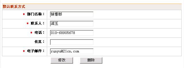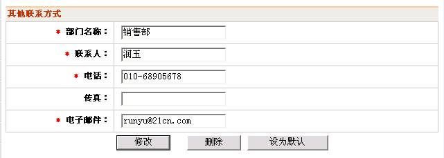 技巧:第一步,在“部門聯(lián)系方式”里增添你們部門的信息。第二步,在發(fā)信息的時(shí)候先檢查一下當(dāng)前聯(lián)系方式是否自己部門的,如果不是就在“部門聯(lián)系方式”里將自己部門設(shè)為默認(rèn),然后再發(fā)布信息。這樣信息上顯示的聯(lián)系方式就是你們部門的聯(lián)系方式, 感興趣的用戶就可以直接和你們部門聯(lián)系了!