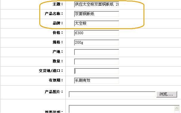 舉例: 假設(shè)您供應(yīng)銅版紙,在發(fā)布信息時(shí)填寫主題:供應(yīng)XX牌XX銅版紙 XXg、產(chǎn)品名稱:XX銅版紙,那么客戶無論搜索“銅版紙”、“XX牌”還是“XX銅版紙”,都能夠看到您的信息!