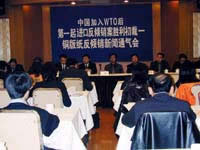 大會主持人姚旭升先生強調,這是中國進入WT0后第一例銅版紙反傾銷案件,這一初裁結果是國內銅版紙生產企業共同努力,運用WTO知識保護自己合法權益的結果,更是國家經貿委、外經貿部及相關職能部門高效、務實的工作作風的結果。國產紙的生產廠商已經懂得運用國際慣例,來維護自己正當的合法的權益、今天我們四家企業為了一個共同的目標走到了一起,為了維護好國內銅版紙市場公平競爭的環境而走到了一起,相信今后,還會有更多的企業為了維護中國紙業的健康發展而走到一起。