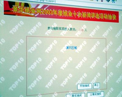 電腦隨機抽獎界面 2003年度中國紙業十大新聞評選結果如下: