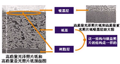 吸墨層:其中的物質由特殊材料構成,保證打印輸出的持久性 (耐濕、耐熱、防水、抗光、耐磨,它表面平滑,對光線的反射穩定) 。
