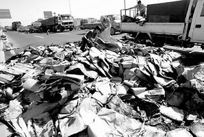圖為被煙頭引燃的滿地牛皮紙 |