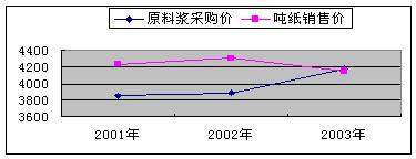 近三年,公司通過先后引進30萬噸高檔銅版紙項目、18萬噸A級箱板紙項目、15萬噸高檔新聞紙項目以及結合對公司傳統生產線實施技術改造,使產能從2000 年初期的40萬噸提高到目前的年產140萬噸紙水平,產能擴張為公司業績提供了保障。不過2003 年公司生產紙制品原料漿價格持續上漲,2003 年初每噸平均價格為3887 元,2003 年12月上升到每噸4176 元,這在一定程度上加大了公司的成本壓力。由于國內銅版紙市場受到進口銅版紙傾銷的沖擊,2002 年上半年國產銅版紙噸紙售價甚至跌至7000 元以下,我國因此從2003 年8月起向原產于韓國、日本的銅版紙征收為期五年的反傾銷稅。受此影響,銅版紙市場價格2003 年下半年以來開始逐步回升。對進口的抑制以及未來國內市場需求的日益增加使得銅版紙價格有繼續上調的可能。公司因此有意加大了銅版紙的庫存,以等待價格的回升,產品價格上升預計可以彌補其成本上升帶來的壓力,因此公司業績仍有望得到繼續提升。