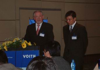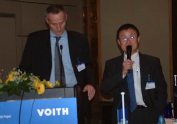 福伊特造紙控制總經理Josef Sattler與福伊特造紙自動控制項目經理鄭慶華做了《Voith Paper Automation——把過程變成了數據》報告。