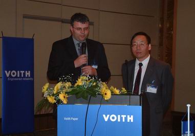 板紙和包裝紙機優化部部門經理Uwe Knotzer和中國區服務部部門經理紀長有對《Voith Process Solutions——使您系統的性能協調一致》進行了介紹。