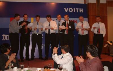 隨后,福伊特舉行晚宴,并邀請了山東省的一些演員進行精彩演出。在宴會期間,福伊特的國外專家還為大家帶來了精彩的節目,演唱了《友誼地久天長》和奧地利民歌,博得現場的陣陣喝彩。