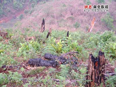 在采訪中,不止一個當地人告訴記者,APP來到這里后先實行“三光政策”,就是“圈光、砍光、燒光”。然后再種上它的桉樹。這個程序就是先將看中的宜林荒山或有林地先通過一些辦法拿到手,然后將地上的林木都砍伐干凈,砍下的那些數十年樹齡的天然林木,因為運輸汽車進不來,好多都運不走,就地焚燒了。運用這種高效快捷的“三光政策”,在滇西南深山中,那些茂密的天然林不見了,取而代之的是一株株幼小的長勢良好的桉樹苗。