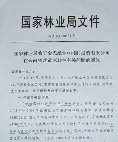 國家林業局關于金光的通知原件:
