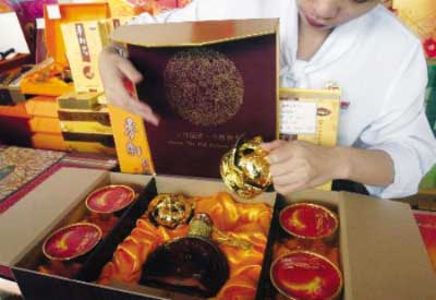 而2003年中秋節,國內更曾有標價31萬元的“中秋月餅加住房”;2004年中秋節曾有賣價18萬元、內含一件純金金佛的月餅禮盒。此外,內有高檔洋酒、高檔茶葉以及鍍金刀叉等物品的高檔月餅禮盒比比皆是。
