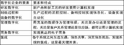 一、 企業(yè)領(lǐng)導(dǎo)者要站在一定高度上看待信息化問(wèn)題,正確認(rèn)識(shí)什么是信息化。信息化不只是ERP,更牽扯到管理結(jié)構(gòu)、觀念上的變革。因此,選型時(shí)要有特色,要從基礎(chǔ)架構(gòu)和管理方式上都比競(jìng)爭(zhēng)對(duì)手強(qiáng),這樣才能使信息化從一開(kāi)始就處于比較有利的位置。董鷹認(rèn)為,做信息化的實(shí)質(zhì)是“數(shù)字化企業(yè)”,而表1是他所列的數(shù)字化企業(yè)的要素。