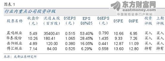 新聞紙行業龍頭,后續增長寄望2006年公司是國內最大的新聞紙龍頭企業,目前有年產高檔新聞紙36萬噸的生產能力。與同類公司相比,公司的設備先進、管理嚴格、機制靈活、成本控制好,新聞紙噸紙成本約3000元,接近國外同行水平,是新聞紙行業中競爭力最強的企業。我們認為,由于新聞紙供應仍然偏緊,2005上半年新聞紙價格仍可穩定在5400-5500元/噸,下半年價格將滑落至5100-5200元/噸。公司15億元可轉債仍未獲得批準。由于擬募集資金投入項目正在實施中,因此今年的財務費用將增加。公司和斯特拉恩索的合資的 20萬噸SC紙項目預計近期正式簽約,最快2006年投產;公司林漿紙一體化項目已獲國家有關部門批準,但我們認為公司目前資金比較緊張,預計2006年前不會大規模實施。我們預計公司2005年EPS為1.061元,2006年EPS為1.435元。