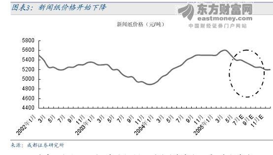 2005年第3季度我國造紙行業大部分紙種需求不減,但新聞紙、銅版紙的價格已經松動,箱板紙和紙板的開工率仍然不足,價格也依然在低端徘徊。國際木漿價格總體仍在下降,前期一直堅挺的闊葉漿價格3季度價格開始下降而針葉漿已經觸底反彈。廢紙價格變化不大,仍保持在今年以來的低位。我們預計隨著新聞紙新增產能的投產和白紙板開工率的恢復,廢紙價格將逐漸回升。