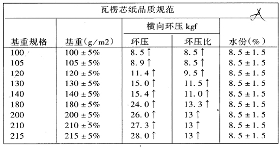 瓦楞芯紙的規(guī)格見(jiàn)下表: