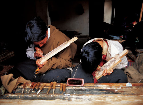 藏地有三座古老的印經院:德格印經院、拉薩印經院和日喀則印經院。日喀則印經院“文革”期間被毀,在剩下的兩座印經院中,以德格印經院的規模更大,收藏也更豐富。德格印經院的院長雄嘎30來歲,形象如同他名字的漢文意思,高大威武,是典型的康巴漢子模樣。他因祖傳而懂藏醫,又學過畫“唐卡”,舉止談吐溫文爾雅,有僧侶的風度,或許和他常年在如同寺院一般的印經院工作有關。