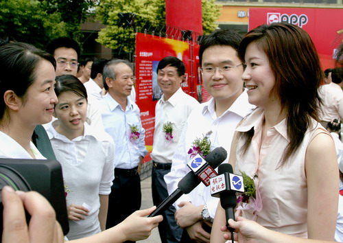 9月1日,在素有"城市客廳"之稱的大市口廣場上,人頭攢動,彩球飄揚。"黃奕聰基金會"助學活動啟動儀式正在此舉行。出席儀式的有鎮(zhèn)江市市長許津榮、鎮(zhèn)江市副市長王萍、鎮(zhèn)江市政協副主席解信鵬、杜正起、鎮(zhèn)江教育局局長劉國榮、金光集團APP中國總部總裁助理黃杰勝及太太虞蘅、金東紙業(yè)總經理吳省芳、金光集團APP中國總部財務部總經理翟京麗、金光集團APP中國總部財務部總經理特別助理曾敬珍等。