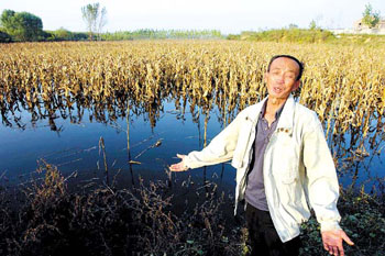 黃金周期間,記者曾接到襄汾新城鎮橋子溝不少村民反映,他們的玉米地被上游鄧莊鎮各個村子里造紙廠的工業污水淹沒,眼巴巴地看著上百畝的玉米卻沒法收獲,而且還投告無門。本應是秋播的大忙季節,可襄汾縣新城鎮橋子溝村村民楊文亮卻眼看著玉米棒子掛在稈上無法收獲,秋播更不用說了。