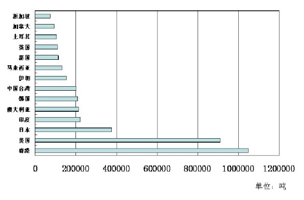 圖:2006年中國(guó)紙張出口國(guó)別情況(噸)