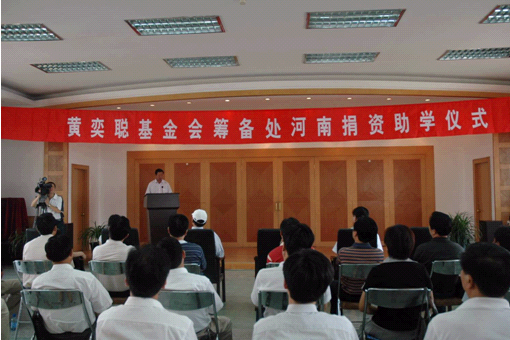 2007年6月29日上午,黃奕聰基金會籌備處河南捐資助學儀式在河南省委統戰部機關會議室舉行。
