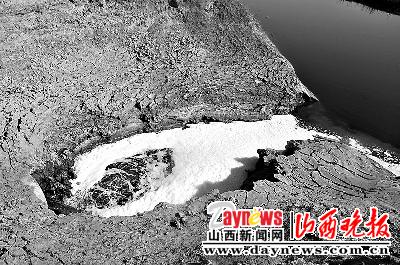 造紙廠泛著泡沫的黑水直接排入汾河河道