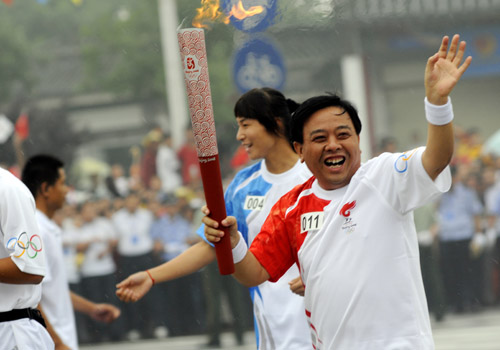 8點14分,北京奧運火炬接力曲阜站傳遞活動正式開始,100名火炬手在儒家文化發(fā)祥地——孔子故里傳遞“更快、更高、更強”的奧林匹克夢想。公司董事長李洪信傳遞11棒,在火炬?zhèn)鬟f中李洪信接受中央電視臺采訪,他說,能夠成為火炬手感到無比幸福和自豪,這是7000多太陽人的光榮,也是兗州市58萬人民的光榮。太陽紙業(yè)500名職工在奧運圣火傳遞現(xiàn)場為董事長李洪信吶喊、助威、加油。