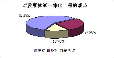 目前各界人士對林紙一體化工程的持有不同觀點。從調(diào)查數(shù)據(jù)可以看出,不少受訪者對林紙一體化工程持反對意見,但是也有超過58%的人士仍然支持林紙一體化工程的發(fā)展。