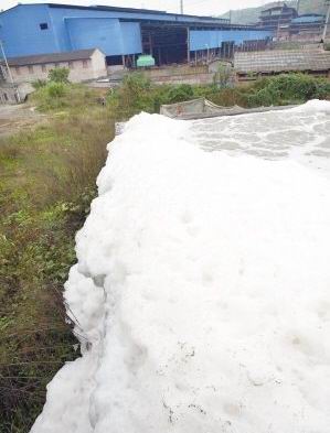 造紙廠的污水處理池涌出大量泡沫