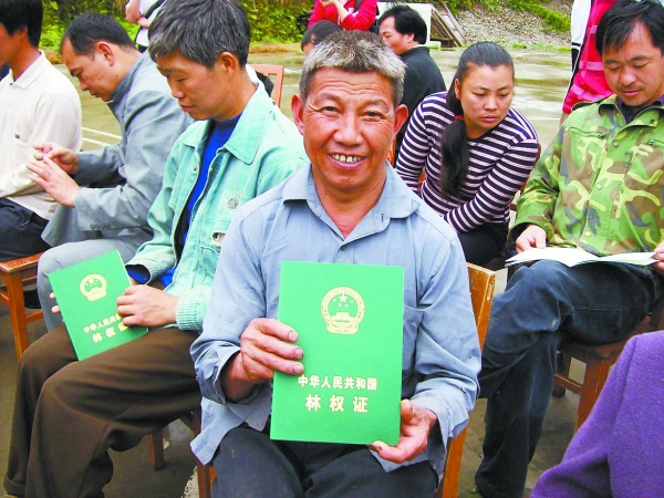 5月5日,龍勝各族自治縣江底鄉地靈村群眾高興地展示新領到的林權證書。當日,該縣在地靈村舉行林權證書首發儀式,共有50多戶農戶成為該縣第一批領到林權證書的對象。自林權制度改革工作開展以來,當地各級黨政高度重視,采取干部包村到點的責任制,廣大林權工作人員不完成任務不出村。目前當地農戶所有山場勘界、繪圖任務已順利完成,這里的群眾將在近期陸續領到具有產權意義的林權證書。□通訊員粟成會譚宗革攝