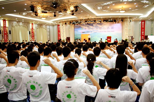 2009年,金光集團APP(中國)在蘇州舉行的制漿造紙可持續(xù)發(fā)展論壇上,回顧了企業(yè)“立足中國、綠色承諾”一年來的成績,并向社會公眾公布相關承諾數(shù)據(jù)達成的情況,接受社會公眾的監(jiān)督。2009年,APP下屬的金海漿紙通過審核驗收,成為海南第一家通過階段性驗收的清潔生產試點單位;金華盛和寧波亞洲漿紙業(yè)年內分別投資建設了中水回用設備和Fenton污水處理系統(tǒng);金東紙業(yè)截至2009年底的環(huán)保總投入已達11.5億元。同時,APP(中國)在2009年初完成了集團首個“碳足跡”評估項目,成為國內制漿造紙行業(yè)中首家進行大規(guī)模碳排放評估的企業(yè),并為長期的節(jié)能減碳管理明確了基準線。