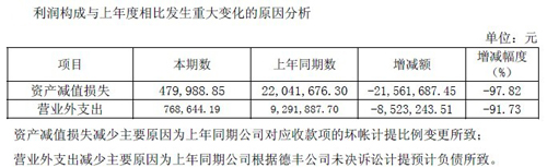 除此之外,“資產減值損失”和“營業外支出”兩項也是提升凈利潤的重要因素。
