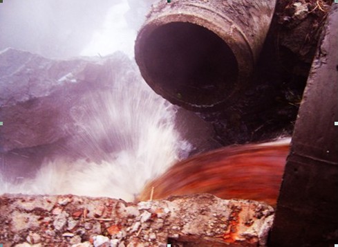 棕紅色造紙廢水使韋河閘下游變成了“紅河谷”最終流入淮河。