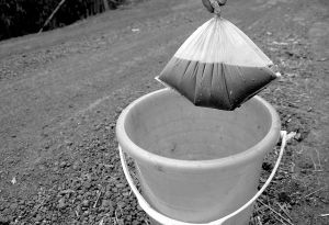 村民早上5點鐘收集到的偷排污水。
