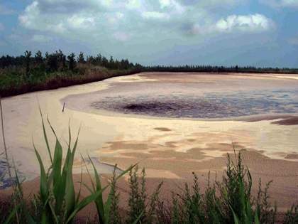 2010年初,國家環保部華東督察中心的檢查人員在射陽“雙燈”廠區西北方向約10公里處的保護區濕地中取樣分析,有機污染物COD為785毫克/每升,是國家現行再生紙排放標準的6倍多,屬于嚴重超標排放。國家環保部華東督察中心有關負責人表示:雙燈紙業長年的違法排污已經給保護區的濕地生態環境造成不可恢復的影響(此“雙燈”污水氧化塘圖片為相關網絡圖片)
