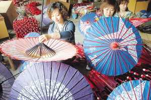 “紙傘在日本市場銷路極好,但企業加工能力有限,許多訂單只能放棄!痹诮óT市西大街的帆達工藝廠內,廠長鄒小玲道出了苦衷。1986年,她走上工作崗位之初,就開始與紙傘打交道。2003年,她自己辦廠經營紙傘產品,但由于生產中困難重重,產量從原先的年產12萬把,降到現在的3萬把。