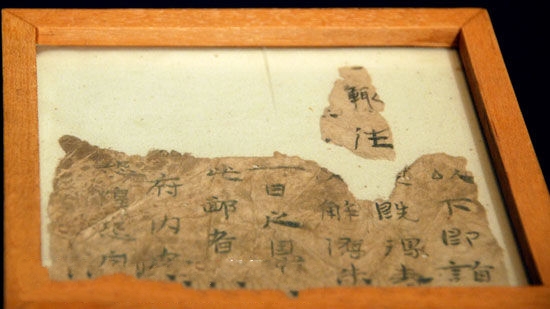 甘肅博物館館藏的肩水金關紙,公元前公元前206年至公元8年之間的古紙。現藏于甘肅省博物館