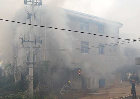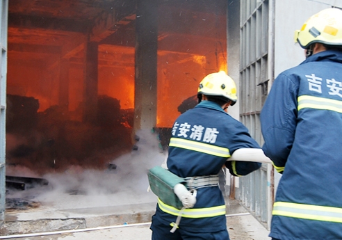 上午8時10分接到報警后,青原大隊官兵出動3輛消防車、20名官兵火速趕往現(xiàn)場。由于是紙箱廠起火,遠遠就能看到園區(qū)上空濃煙彌漫。火災(zāi)現(xiàn)場位于一幢三層小樓內(nèi),一樓倉庫成了火海,肆虐的火舌透過窗戶不斷往外噴,毗鄰的一家電子廠岌岌可危。當時,紙箱廠職工拿著水桶、臉盆自救。據(jù)該廠負責人介紹,廠房二樓是職工宿舍,不清楚是否有人被困。