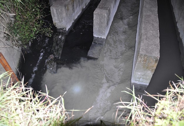 來到江西峽江造紙工業園區,只見幾家企業的污水口聚集在一處,污水在此匯集成一股巨大水流,攜帶著大量污泥,通過幾道污水渠,將未加任何凈化處理和生產污水直排贛江。黑色污水散發著刺鼻的臭味,令人窒息。污水泛著白色的泡沫。排污口的石頭被染得烏黑,兩邊的石頭被厚厚的黑色淤泥所覆蓋。
