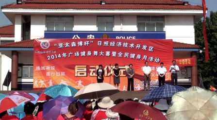 5月27日,“亞太森博杯”日照經濟技術開發區2014年廣場健身舞大賽在日照經濟技術開發區中心公園舉行,日照經濟技術開發區工委委員、宣傳部部長郭莉,亞太森博(山東)漿紙有限公司副總經理唐曉魯出席開幕式,開幕式由日照經濟技術開發區管委會副主任董建華主持。