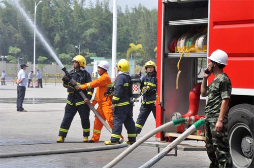 “倉庫起火啦!”隨著一聲驚叫,刺耳的警報聲響起,現場濃煙四起,乍以為哪里起火了呢?仔細一看,原是新會區進行生產安全事故應急救援演練。10月17日上午,由新會區政府、雙水鎮政府主辦的2014新會區進行生產安全事故應急救援演練在亞太森博(廣東)有限公司舉行。