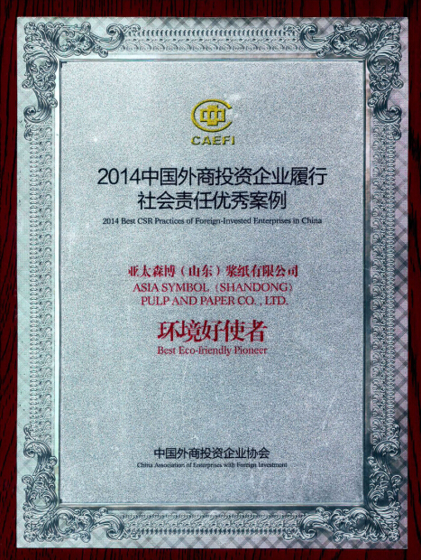 12月5日,中國外商投資企業(yè)協(xié)會與《WTO經(jīng)濟導(dǎo)刊》合作共同主辦的中國外商投資企業(yè)履行社會責(zé)任優(yōu)秀案例發(fā)布會在北京召開,亞太森博(山東)漿紙有限公司城市污水回用項目入選《中國外商投資企業(yè)履行社會責(zé)任優(yōu)秀案例集2014》。原外經(jīng)貿(mào)部部長、中國外資協(xié)會名譽會長石廣生參加發(fā)布會并為優(yōu)秀案例授牌。