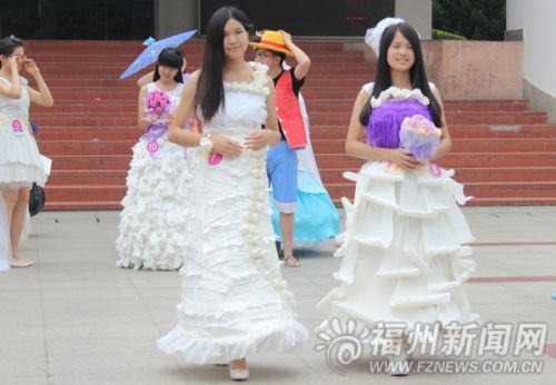 福建農(nóng)林大學(xué)生廢紙婚紗走秀
