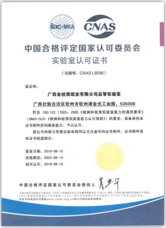 近日,APP(中國)旗下企業(yè)廣西金桂漿紙業(yè)有限公司獲得了由中國合格評定國家認(rèn)可委員會(CNAS)頒發(fā)的實(shí)驗(yàn)室認(rèn)可證書。