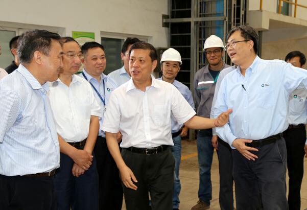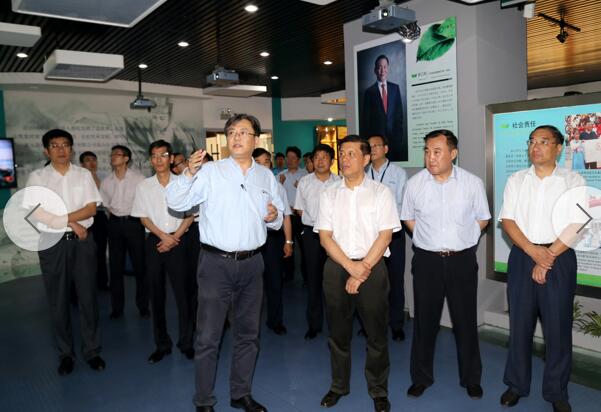 王安德一行參觀了企業展廳,聽取了企業環境保護和資源循環利用情況的介紹。在了解到企業環保投資達40億元,各項環保指標達到行業領先水平時,王安德給予充分肯定。