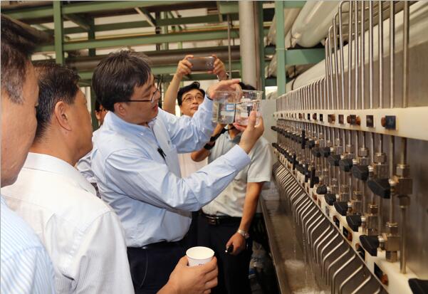 在城市中水回用車間,當了解到這個項目可以有效回收利用城市生活污水處理廠的中水,每年可以節約1000多萬噸水資源時,王安德給予高度評價,認為該項目除了節約大量淡水資源外,還減少了排污量,這也是未來的一個方向,有很強的示范引領意義。