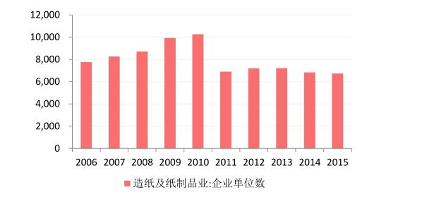 目前我國漿紙市體量在1.4萬億以上,原紙市場在8000億以上,包裝用紙在2500億左右。除了包裝用紙外,文化用紙也占據造紙行業重要地位,2015年我國文化用紙生產量占總產量占比23.48%。2015年我國造紙行業的企業單位數有6737家,全國范圍內排名前10的造紙企業產能占全國總產能的30%左右,前100位的紙企產能占全國總產能的60%左右。