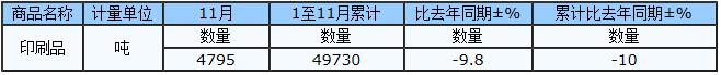 2017年1-11月中國印刷品進口量49730噸