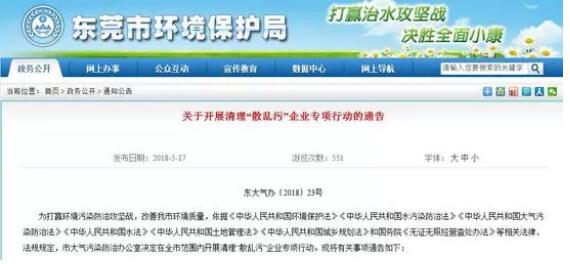 廣東省東莞市以雷霆之勢打響藍天保衛(wèi)戰(zhàn)!全市嚴厲整治“散污亂”企業(yè)!“散亂污”企業(yè)需在2018年5月27日前自行停產!逾期不停產的,斷水、斷電!依法依規(guī)予以取締!并對責任人依法從嚴查處!也就是說,現(xiàn)在這些企業(yè),即將徹底消失在我們的視線里!而散亂污企業(yè),就包括了:印刷包裝、油墨、膠粘劑、廢塑料加工等小型制造加工企業(yè),這些紙箱廠、包裝印刷廠已難逃一劫! 5月17日,東莞市大氣辦發(fā)布《關于開展清理“散亂污”企業(yè)專項行動的通告》(簡稱《通告》)。根據(jù)《通告》,全市范圍內將開展清理“散亂污”企業(yè)專項行動。 “散亂污”企業(yè)主要包括但不限于:印刷包裝、油墨、膠粘劑、有機溶劑、有色金屬熔煉加工、橡膠生產、制革、化工、陶瓷燒制、鑄造、絲網加工、軋鋼、耐火材料、碳素生產、石灰窯、磚瓦窯、水泥粉磨站、廢塑料加工、小煉油、玻璃制造、紡織印染、合成纖維制造、表面涂裝、家具、制鞋、汽修、食品加工、石材加工、廢品回收加工、人造板制造、電子元件制造、酸洗磷化等小型制造加工企業(yè);涉及使用涂料、油漆等小型企業(yè)或加工點。