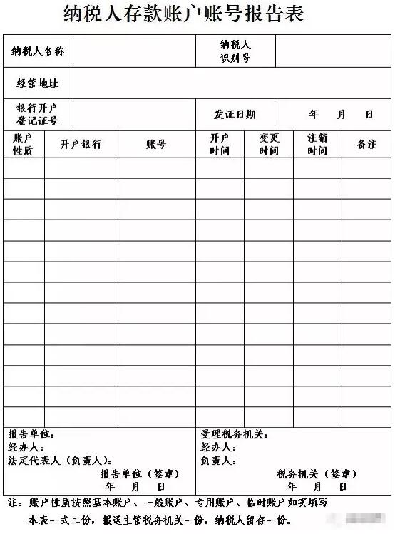 關(guān)于修改《納稅人存款賬戶賬號(hào)報(bào)告表》式樣的公告