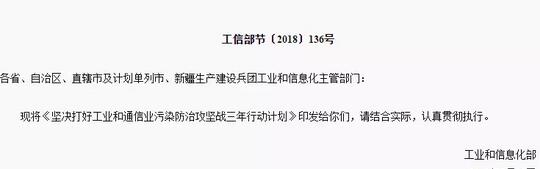 堅決打好工業和通信業污染防治攻堅戰三年行動計劃 為貫徹落實《中共中央國務院關于全面加強生態環境保護堅決打好污染防治攻堅戰的意見》,切實履行工業和通信業生態環境保護職責,在推動制造強國和網絡強國建設中,全面推進工業綠色發展,堅決打好污染防治攻堅戰,促進工業和通信業高質量發展,制定本行動計劃。 一、總體要求 以習近平新時代中國特色社會主義思想為指導,全面貫徹黨的十九大和十九屆二中、三中全會精神,認真落實黨中央、國務院決策部署和全國生態環境保護大會要求,牢固樹立“四個意識”,堅定“四個自信”,堅持新發展理念,自覺把經濟社會發展同生態文明建設統籌起來,以供給側結構性改革為主線,以工業和通信業高質量發展為主攻方向,重點圍繞“調結構、優布局、強產業、全鏈條”,強化技術創新,加強政策保障,推進工業綠色轉型發展,加快形成人與自然和諧相處的綠色發展方式,實現環境效益、經濟效益和社會效益多贏。 到2020年,規模以上企業單位工業增加值能耗比2015年下降18%,單位工業增加值用水量比2015年下降23%,綠色制造和高技術產業占比大幅提高,重點區域和重點流域(具體范圍見附件)重化工業比重明顯下降,產業布局更加優化,結構更加合理,工業綠色發展整體水平顯著提升,綠色發展推進機制基本形成。 二、調整優化產業結構和布局 (一)優化產業布局。落實京津冀和長江經濟帶產業轉移指南,指導重點區域和重點流域產業合理轉移。實施長江經濟帶產業發展市場準入負面清單,明確禁止和限制發展的行業、生產工藝、產品目錄。(部內產業政策司負責,地方工業和信息化主管部門負責落實。 以下均需地方工業和信息化主管部門落實,不再列出)加快推動城鎮人口密集區不符合安全和衛生防護距離的危險化學品生產企業搬遷改造,到2020年,中小型企業和存在重大風險隱患的大型企業搬遷改造工作基本完成,重點區域和重點流域力爭率先完成。推動河北省等重點區域城市鋼鐵企業通過徹底關停、轉型發展、就地改造、域外搬遷等方式,實現轉型升級。結合鋼鐵去產能和廢鋼回收利用情況,研究支持引導電爐煉鋼發展的政策措施。(部內原材料工業司負責) (二)調整產業結構。加大過剩產能壓減力度,重點區域嚴禁新增鋼鐵、水泥、平板玻璃、焦化、電解鋁、鑄造等產能。嚴格執行鋼鐵、電解鋁、水泥、平板玻璃等行業產能置換實施辦法。指導和督促地方政府積極推動鋼鐵、水泥、平板玻璃等行業過剩產能有序退出。 2018年再壓減鋼鐵產能3000萬噸左右,力爭提前完成“十三五”期間鋼鐵去產能1.5億噸的目標。2020年底前,河北鋼鐵產能控制在2億噸以內。嚴防“地條鋼”死灰復燃。(部內原材料工業司牽頭,產業政策司參與)加大鋼鐵等重點行業落后產能淘汰力度,綜合運用質量、環保、能耗、安全等標準依法依規淘汰落后產能。鼓勵各地制定范圍更廣、標準更嚴的落后產能淘汰政策。(部內產業政策司負責) (三)強化“散亂污”企業綜合整治。積極配合生態環境部,根據產業政策、產業布局規劃,以及土地、環保、質量、安全、能耗等要求,參與制定“散亂污”企業及集群整治標準。配合生態環境部門開展“散亂污”工業企業排查和分類。(部內產業政策司牽頭,節能與綜合利用司、安全生產司、原材料工業司、裝備工業司、消費品工業司、電子信息司參與)支持列入整改提升的工業企業實施升級改造。(部內規劃司負責) (四)實施錯峰生產。重點區域實施秋冬季重點行業錯峰生產。各地針對鋼鐵、建材、焦化、鑄造、電解鋁、化工等高排放行業,科學制定錯峰生產方案,實施差別化管理,并將錯峰生產方案細化到企業生產線、工序和設備。 企業未按期完成治理改造任務的,一并納入當地錯峰生產方案,實施停產。加大秋冬季工業企業生產調控力度,加強錯峰生產督導檢查,嚴防錯峰生產“一刀切”和擴大范圍情況的發生。(部內原材料工業司牽頭,規劃司、節能與綜合利用司、裝備工業司、消費品工業司、運行監測協調局參與) 三、加快推進綠色智能改造提升 (五)加強工業節能。持續開展工業節能監察專項行動,實現對重點高耗能行業全覆蓋。實施能效“領跑者”制度,開展能效對標達標,發布重點用能行業能效“領跑者”。加快高效節能技術產品推廣應用,發布國家工業節能技術裝備推薦目錄和“能效之星”產品目錄。(部內節能與綜合利用司負責) (六)推動工業資源綜合利用。建設一批工業資源綜合利用基地,大力推進長江經濟帶磷石膏、冶煉渣、尾礦等工業固體廢物綜合利用。發布再生資源綜合利用規范企業名單,引導再生資源綜合利用企業做大做強。大力推進新能源汽車動力蓄電池回收利用。 指導開展工業固體廢物資源綜合利用評價,推動落實綜合利用稅收優惠政策。力爭到2020年全國工業固體廢物綜合利用率達到73%,主要再生資源回收利用量達到3.5億噸。(部內節能與綜合利用司負責) (七)加強工業節水。提高重點流域和華北等缺水地區工業節水標準。(部內科技司、節能與綜合利用司牽頭,相關司局參與)大力推廣國家鼓勵的工業節水工藝、技術和裝備,開展水效領跑者引領行動,引導和支持工業企業開展水效對標達標活動。持續提高鋼鐵、石化、化工、印染、造紙和食品等高耗水行業用水效率。(部