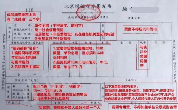 1、企業(yè)經(jīng)營地址和注冊(cè)地址不一致,開具增值稅專用發(fā)票時(shí)應(yīng)按照稅務(wù)登記證(統(tǒng)一社會(huì)信用代碼證)上的地址開具。 2、增值稅專用發(fā)票寫的是“開戶行及賬號(hào)”,所以開具增值稅專用發(fā)票時(shí)應(yīng)填寫企業(yè)基本開戶行及賬號(hào)。 3、銷售方開具發(fā)票時(shí),應(yīng)如實(shí)開具與實(shí)際經(jīng)營業(yè)務(wù)相符的發(fā)票,購買方取得發(fā)票時(shí),不得要求變更品名和金額,也就是說賣啥開啥,不得變更,比如提供的是住宿費(fèi),開具“旅游服務(wù)”的發(fā)票。 4、嚴(yán)格按照《商品和服務(wù)稅收分類與編碼》開具發(fā)票,采用新系統(tǒng)開具的發(fā)票不能”辦公用品”、“材料一批”、“禮品”出現(xiàn)這樣的籠統(tǒng)開具行為,比如《商品和服務(wù)稅收分類與編碼》中有一個(gè)明細(xì)類別是“紙制文具及辦公用品”,因此,發(fā)票摘要寫“紙制文具及辦公用品”是符合規(guī)范的,但是只寫“辦公用品”是不符合規(guī)范的。 5、發(fā)票上的單價(jià)數(shù)量,按相關(guān)稅法規(guī)定發(fā)票信息需要依次據(jù)實(shí)填寫,銷售貨物,需要將單價(jià)、數(shù)量、金額體現(xiàn)在發(fā)票上;如果屬于服務(wù)勞務(wù),確實(shí)沒有單位數(shù)量的可以不體現(xiàn)。 6、由于開票時(shí)有限額,銷售貨物不能一次性全開,分開開具發(fā)票時(shí),會(huì)出現(xiàn)數(shù)量是小數(shù),比如“0.4臺(tái)”,只要分開開具的發(fā)票數(shù)量總額是與實(shí)際銷售數(shù)量相符即可。 7、增值稅專用發(fā)票開票人的填寫,稅務(wù)上沒有要求,但建議最好如實(shí)填寫開票人員姓名,特別是收到一些相對(duì)企業(yè)來說大額的增值稅專用發(fā)票,開票人最好不要是“管理員”,順便提醒一下取得一些新成立商貿(mào)企業(yè)(查當(dāng)?shù)毓ど叹志W(wǎng)站就知道是不是新成立的)開具的大額增值稅專用發(fā)票,且開票人是“管理員”,要特別提高警惕。 8、增值稅發(fā)票“開票人”和“復(fù)核”能否是同一個(gè)人,稅務(wù)上沒有要求,但是從內(nèi)控管理的角度,“開票人”和“復(fù)核”應(yīng)該不是同一個(gè)人,特別是收到一些相對(duì)企業(yè)來說大額的增值稅專用發(fā)票,“開票人”和“復(fù)核”最好不要是同一個(gè)人。 9、成品油專用發(fā)票在發(fā)票的左上角有“成品油”三個(gè)字。 以上僅供參考,如當(dāng)?shù)囟悇?wù)部門有不同管理要求,按照其要求執(zhí)行。 3、這些發(fā)票新規(guī)定,你不得不知的問題 前段時(shí)間,國家稅總局發(fā)布新文件出臺(tái)《企業(yè)所得稅稅前扣除憑證管理辦法》,明確了發(fā)票不再屬于唯一扣稅憑證了,但也要提醒大家,現(xiàn)金支付可能不能稅前扣除。