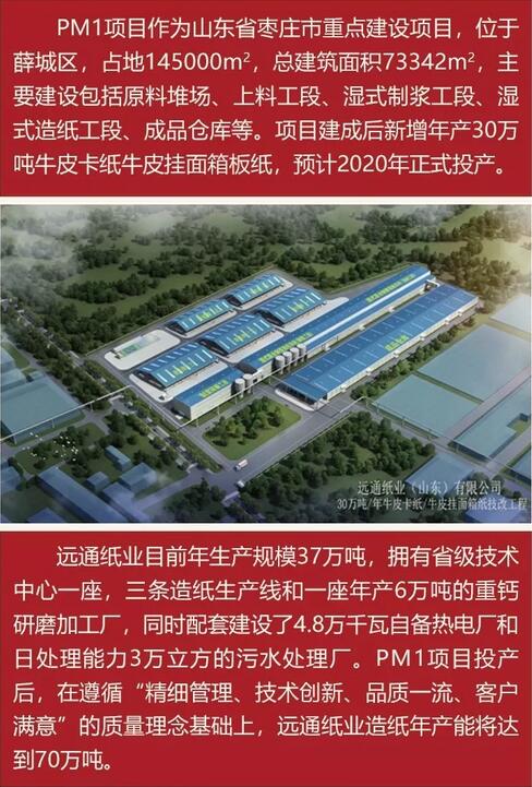 據悉,遠通紙業原名山東華眾(華彩)紙業有限公司,2008年被森信集團收購后重組并改名為遠通紙業(山東)有限公司。目前生產規模為37萬噸,PM1項目投產后,遠通紙業造紙年產能將達70萬噸。